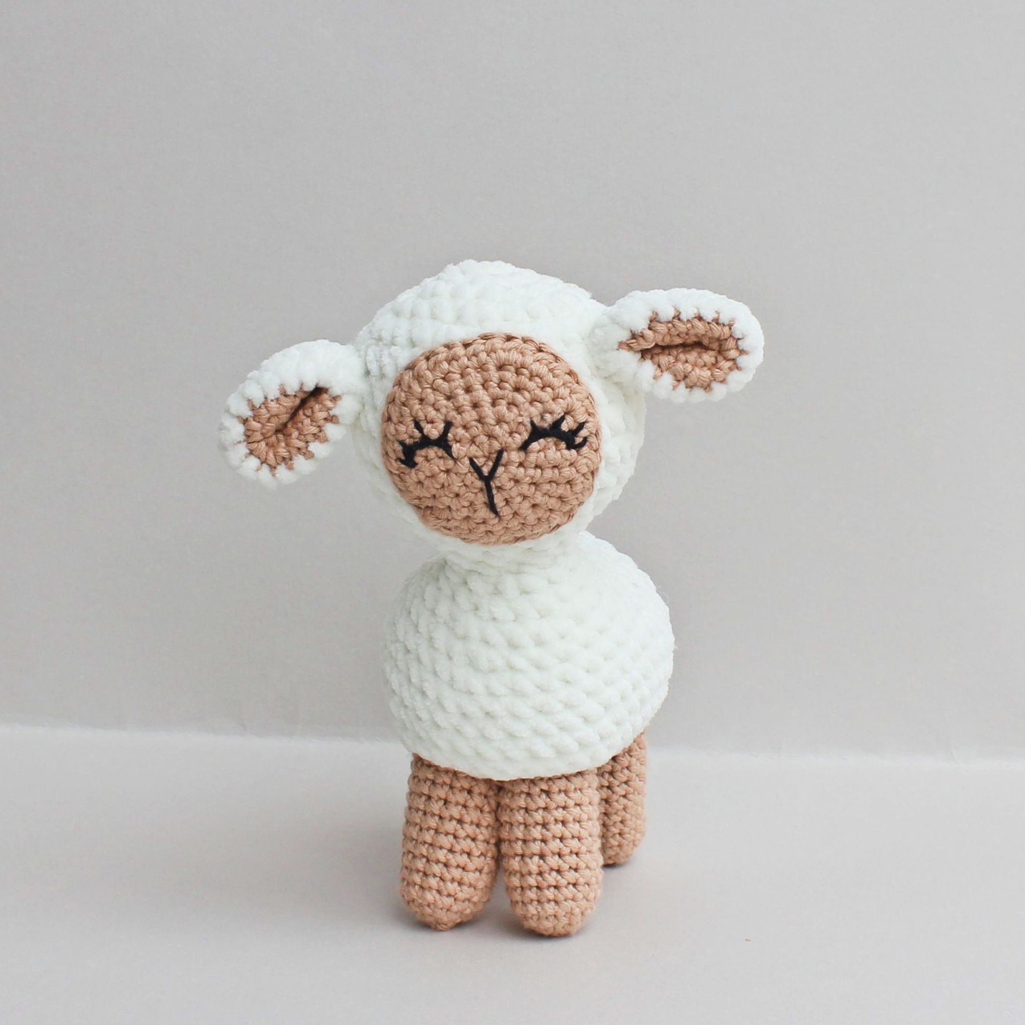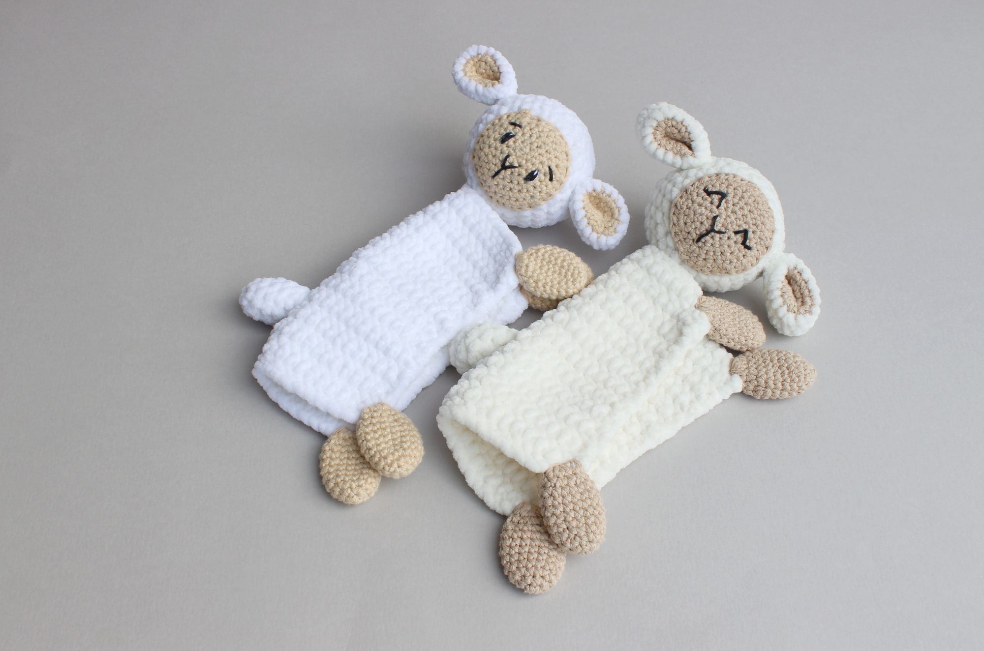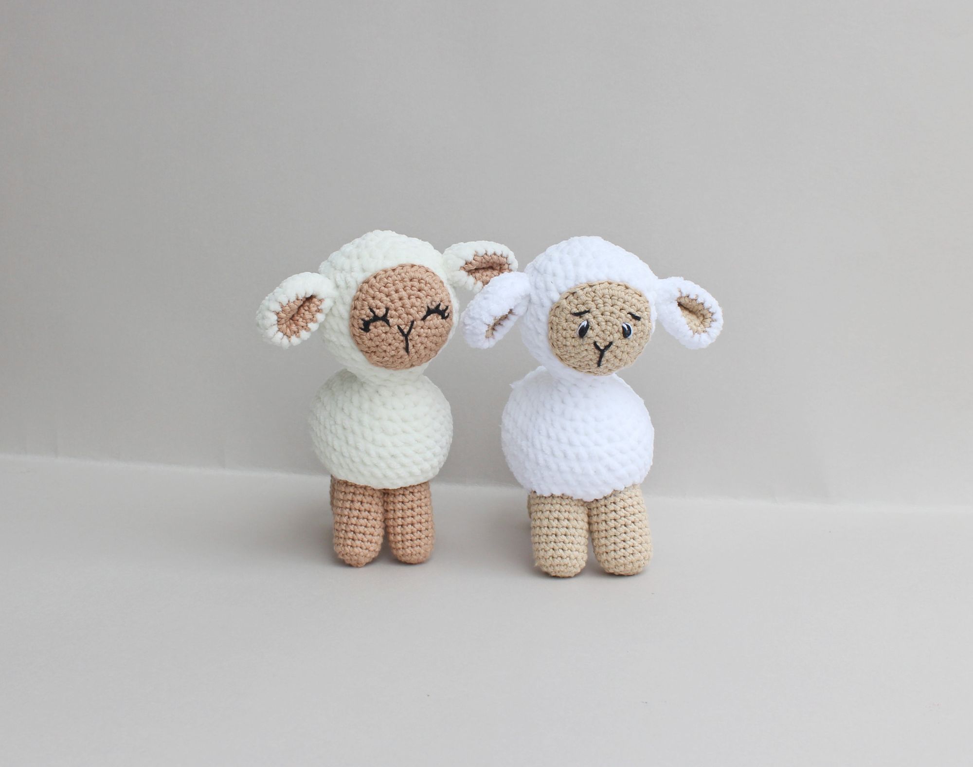 In this article, I will show you how I embroider the faces of crocheted lambs. First of all, I will show the final results for a few pictures, what kind of faces I usually make for them.