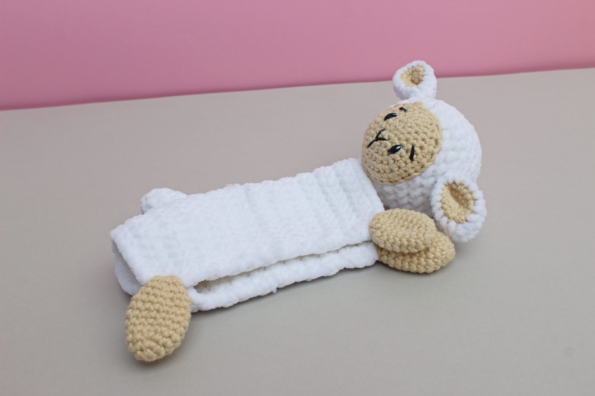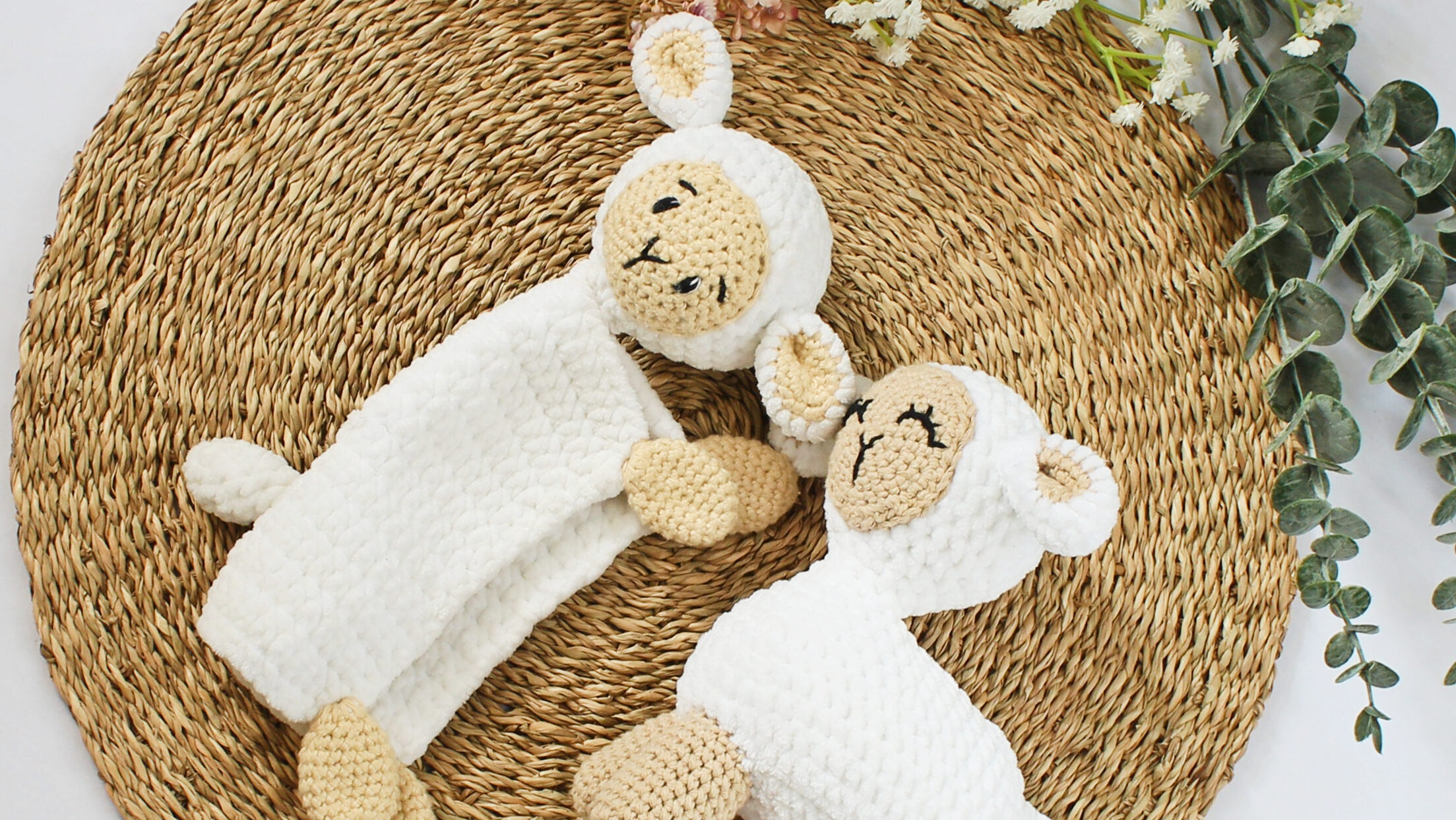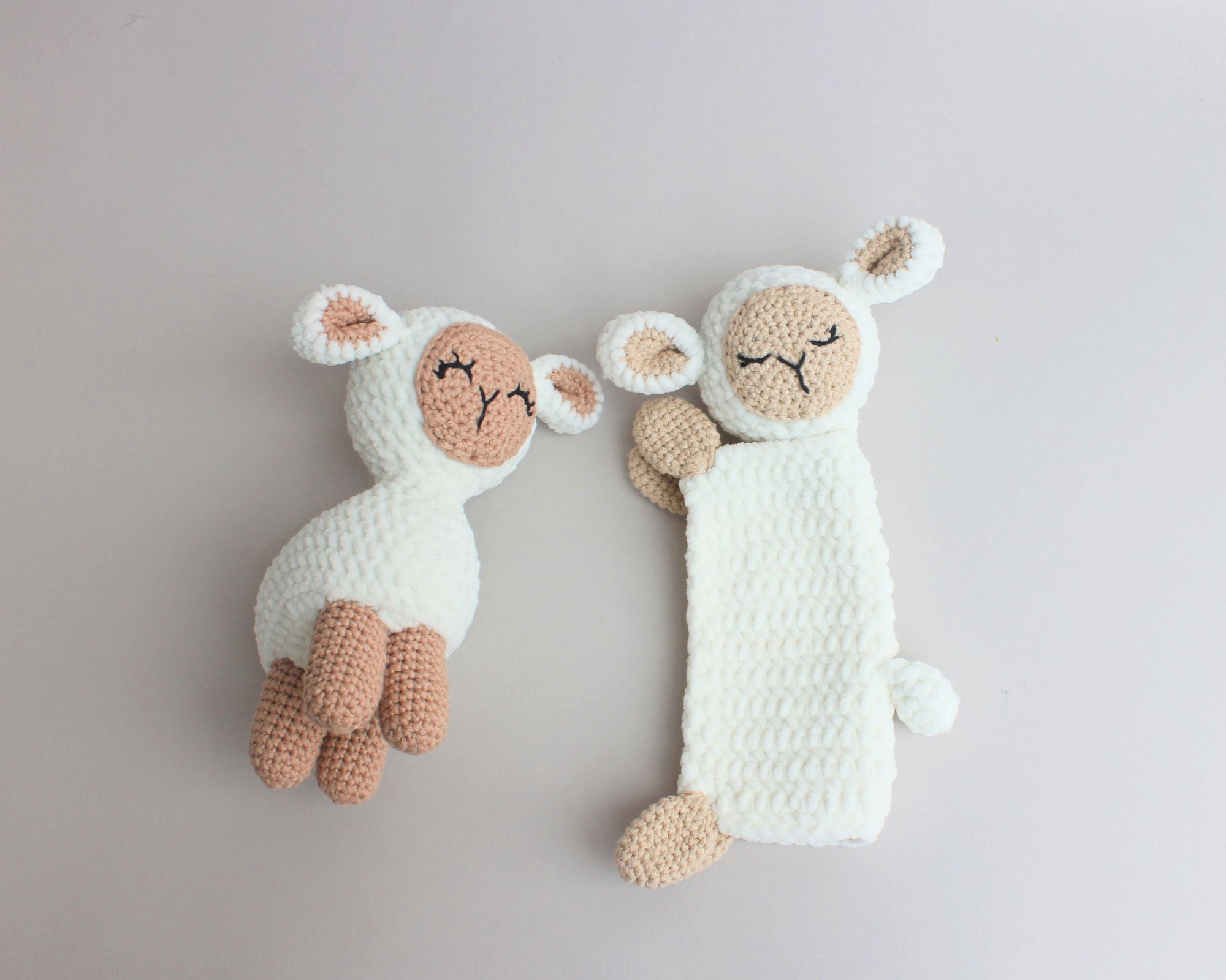 In this article, I will show you how I embroider the faces of crocheted lambs. First of all, I will show the final results for a few pictures, what kind of faces I usually make for them.